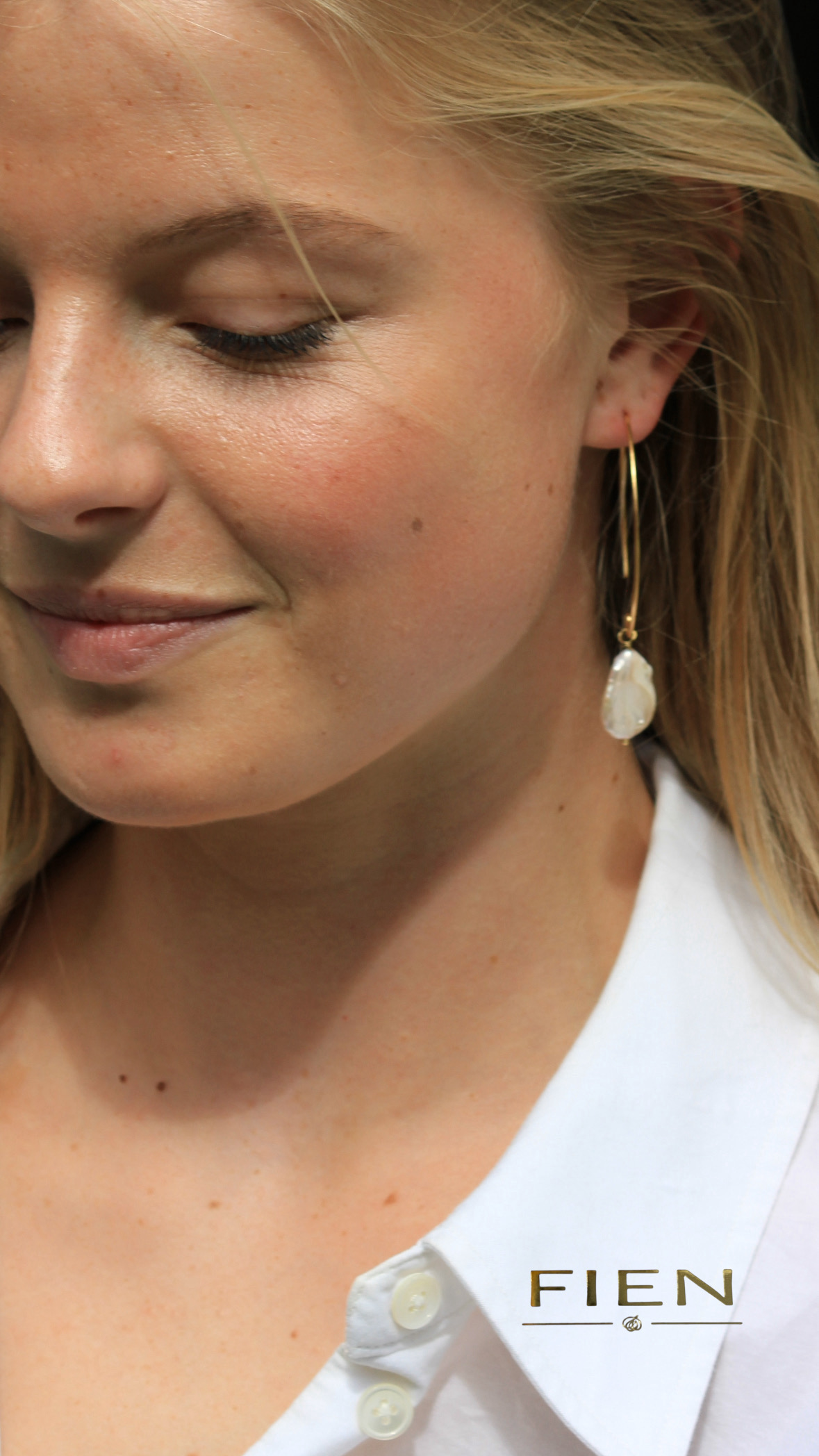 Gouden oorbellen, Pearl hoop Fiene