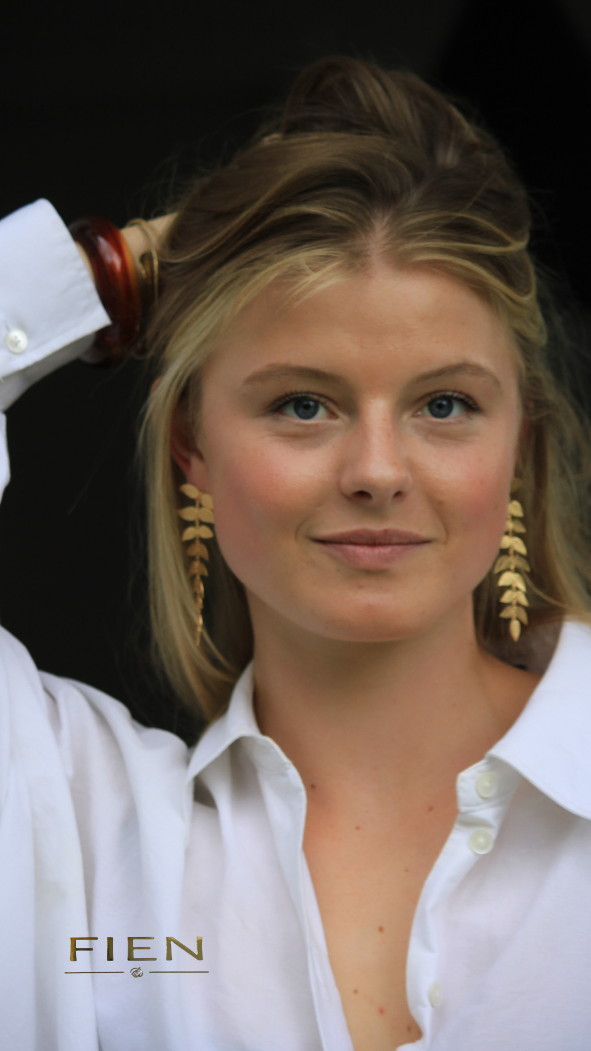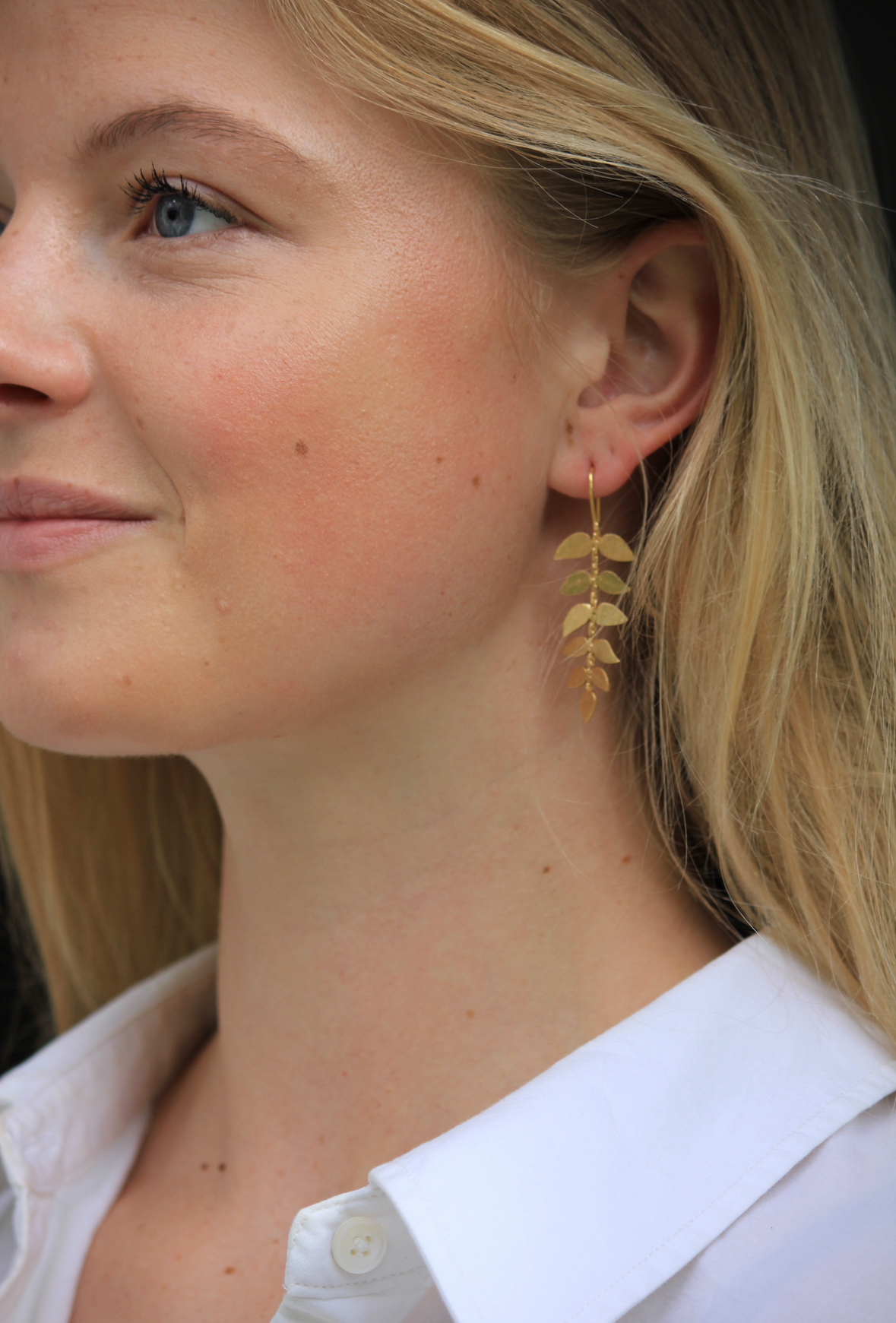 Gouden oorbellen, Florine XL, satin gold leaf stud