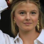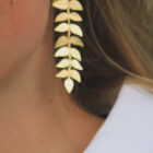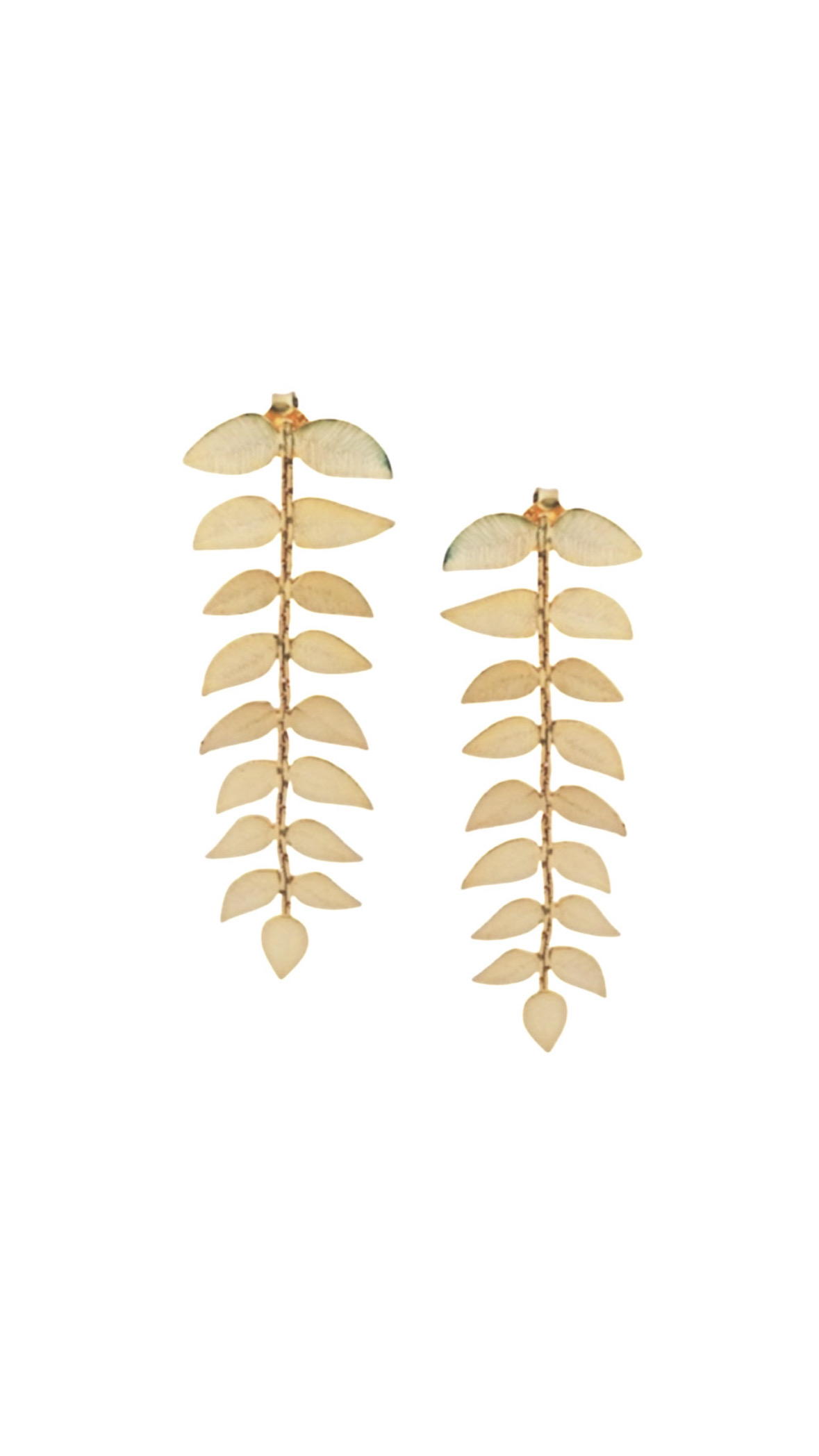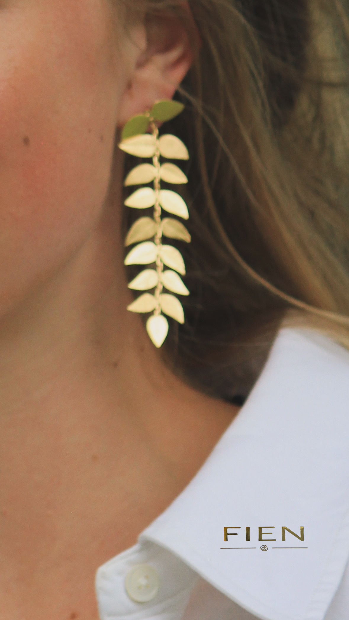 Gouden oorbellen, Es Vedra leaf, M, satin gold