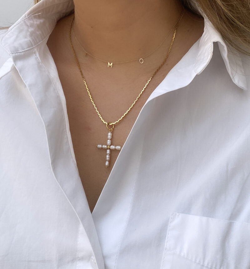 Een prachtige ketting met een parel kruisje. Doordat gebruik wordt gemaakt van pure zoetwater parels is ieder item uniek.